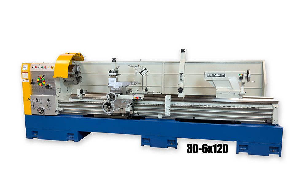 Summit® 26-6″, 30-6″ & 33-6″ Big Hole Engine Lathes raise the industry bar for machines in this size class. They are ISO compliant, offer an impressive list of standard features and accessories, and include a variety of built-in safety features. Summit 26-6″, 30-6″ & 33-6″ Big Hole Lathes are affordable, rugged, reliable and easy to operate, and are known for consistent performance and durability even under the most demanding work conditions. Available in 80″ thru 200″ center distances, the engineering excellence, fine workmanship, materials and impressive specifications of the Summit “Big Hole” engine lathes assure you of greater production and easy, trouble-free operation for years to come.